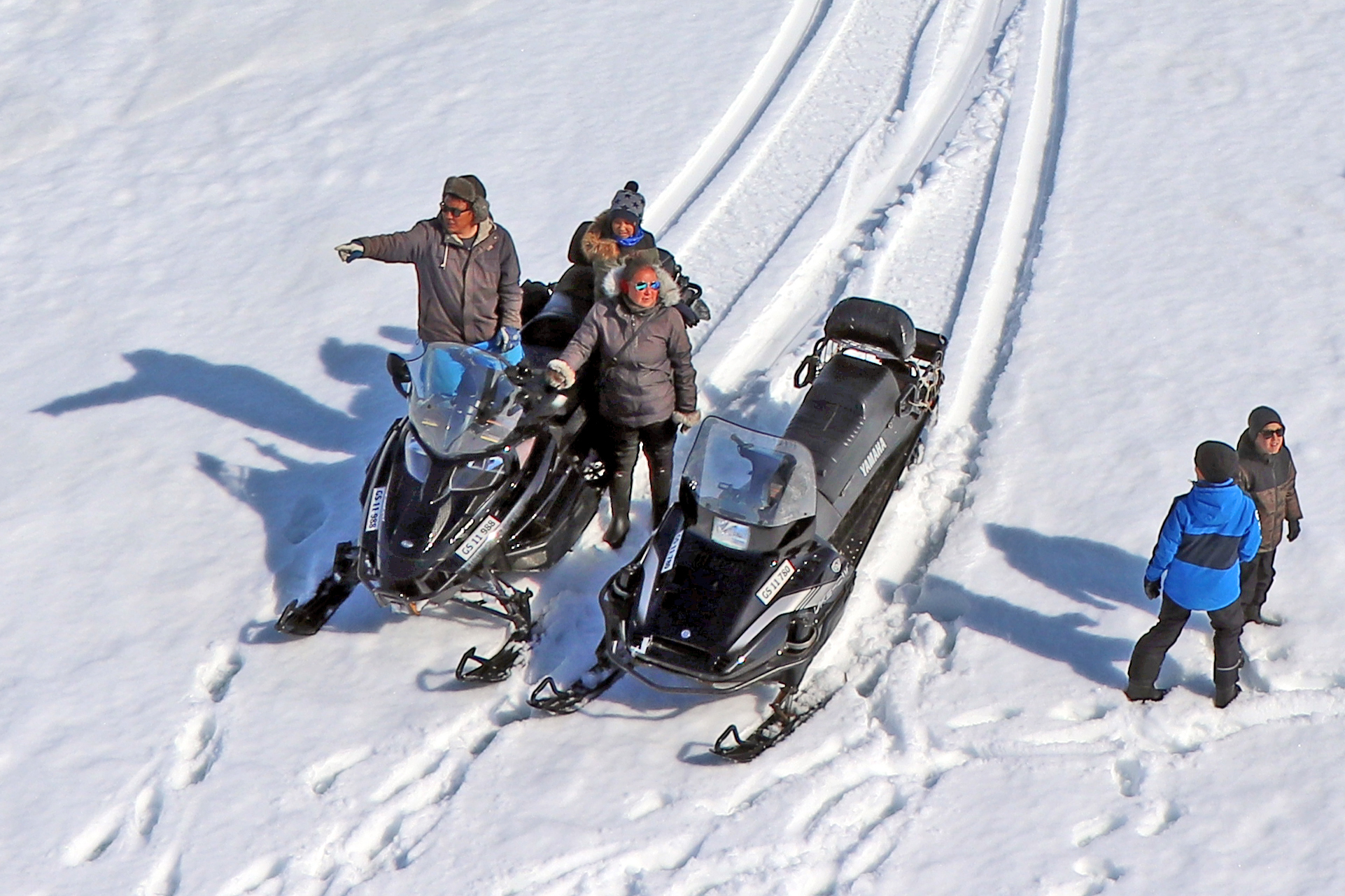 Vers 14h, trois motoneiges viennent du village ...
