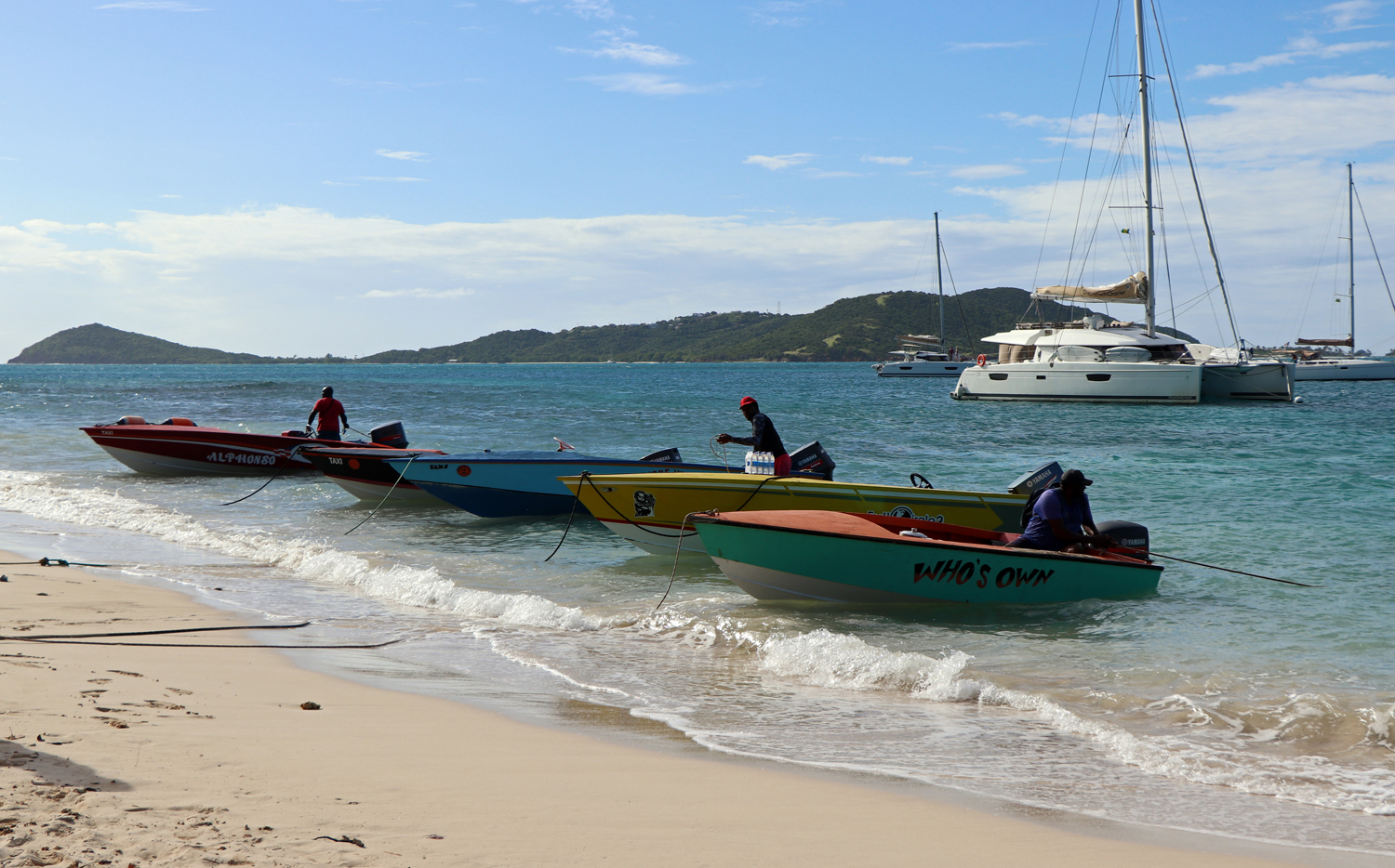 10h nous partons en zodiac pour une île minuscule des Grenadines, Tobago Cays ...